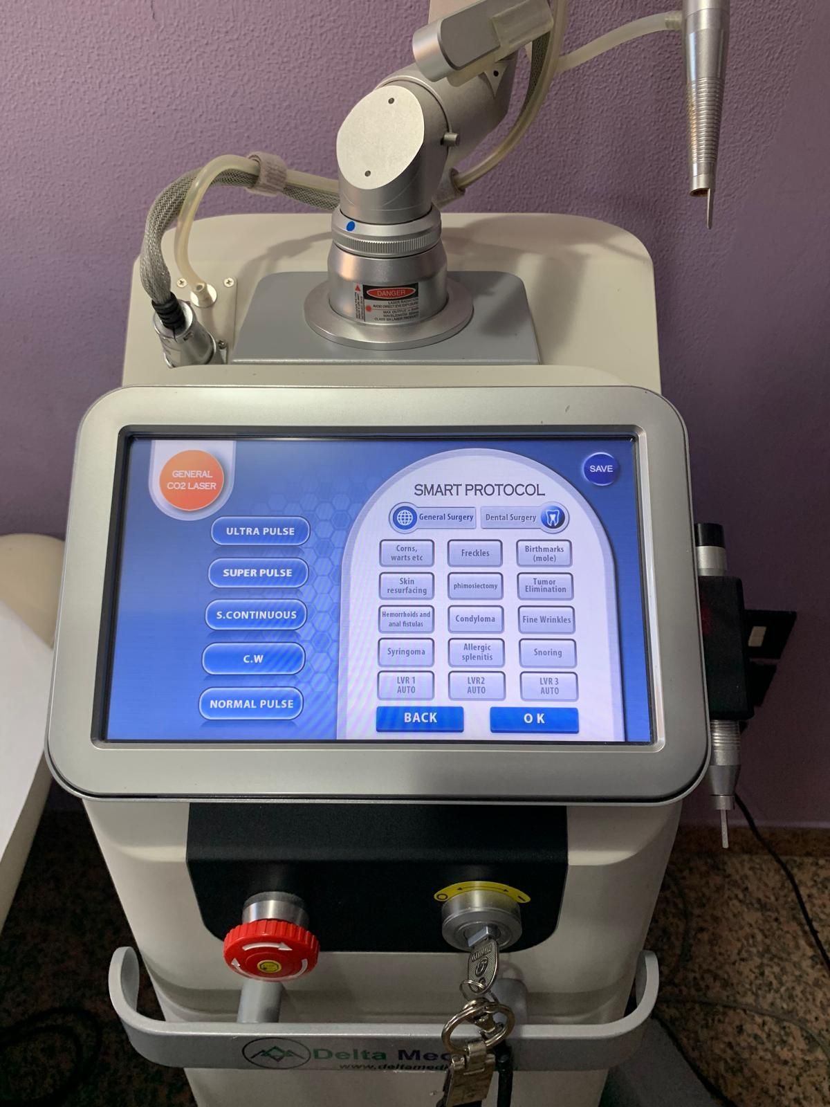 - Laser CO2 frazionato (per ringiovanimento viso, palpebre, rimozione smagliature, asportazione verruche, fibromi, condilomi.);